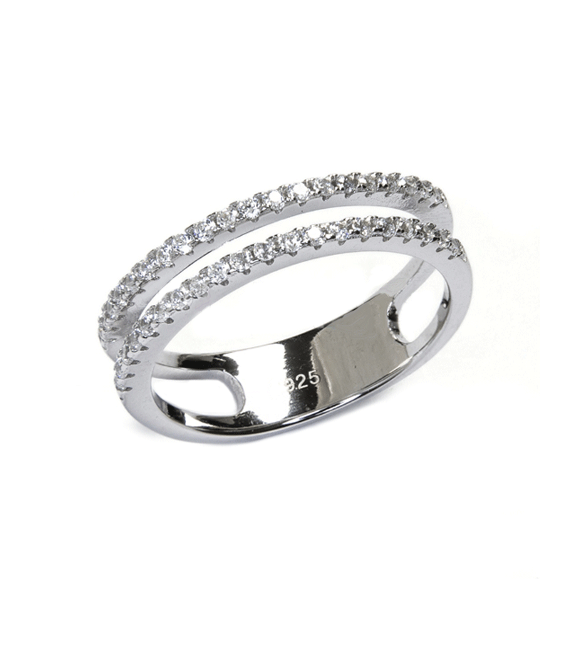 Añadir a la cesta Añadir a la lista de deseos Anillo de Plata con Doble Banda y Circonitas Precio 22,00 € Anillo de diseño con doble banda en plata y hilera de circonitas brillantes de corte clásico. medida 4mm