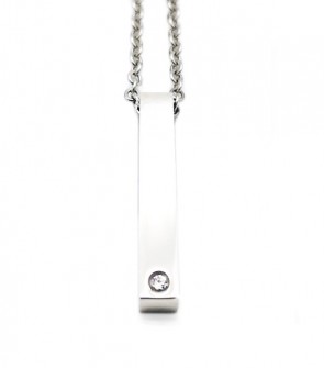 Collar de acero inoxidable con barra vertical con brillante, personalizada con nombre o fecha. Disponible en dos tamaños