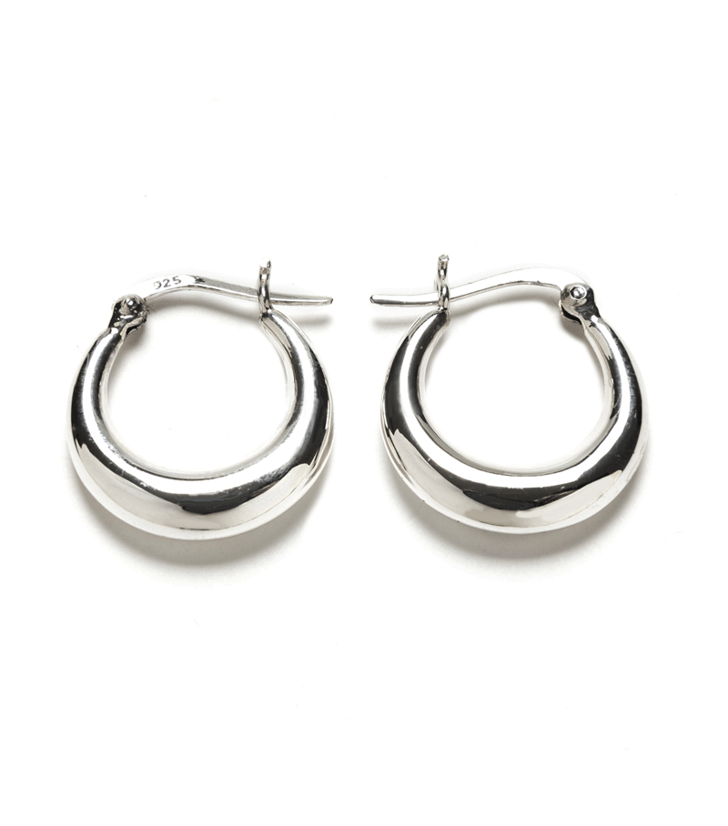 La perla más pequeña se apoya contra el lóbulo de la oreja, mientras que la mas grande asoma desde atras, recuerda un poco a un piercing.