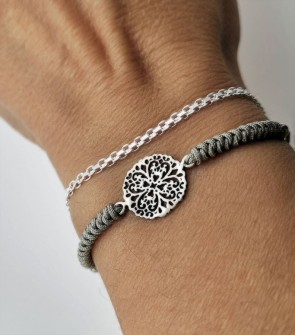 Descubre esta pulsera de nylon con motivo mandala en plata de Ley y suma estilo a tu joyero.